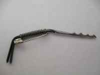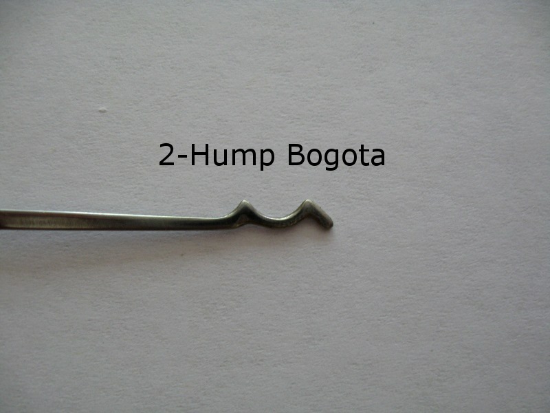 Longtime lp101 user raimundo has become well-known throughout the locksport community for inventing and producing these beautiful tools. He produces them by using various tools (esp. a chainsaw file) to shape short lengths of street-sweeper bristles. Raimundo then finishes them by polishing them to a mirror shine. The classic Bogota is a rake-like tool with 3 humps and is named for the mountains that surround Bogota, Columbia. One of the things that makes these tools unique is the undercutting of the humps. By removing material from these mountains, Rai eliminated the weak points that are found in commercial picks. In Bogota-style tools, the thickness is consistent throughout the pick and thus there is no weak point for pressure to build on leading to bending and possibly even breakage. By removing this material from the underside, it also makes the pick more mobile inside the keyway.