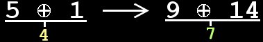 We are looking for differential characteristics that occur frequently (large numbers in the table). In other words, if two numbers are selected at random that satisfy the input differential; there is a high probability that the output differential will be satisfied as well. We don't need to know the actual random values to guess this if we can find a good characteristic to use. Once you've found a good characteristic, find all of the specific input values that produce it and their cooresponding output values. In our case, the characteristic "4 --> 7" has 6 such values (out 16 total). Make note of these values; they will help us find the key soon. One such value set is shown below.