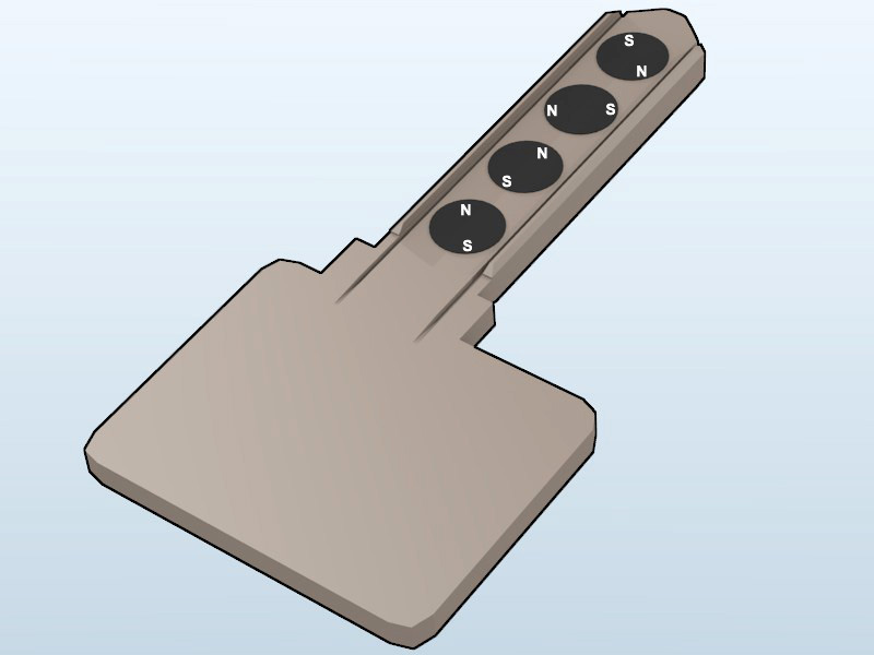 The bitting is determined by a series of magnets crimped into the sides of the key blade. These are magnetized