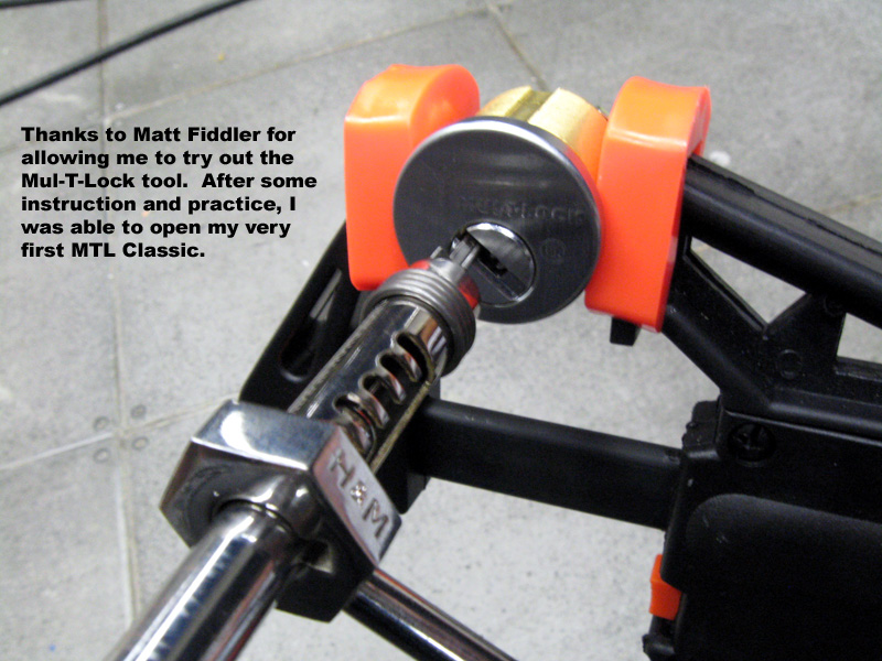 I was finally able to pick a Mul-T-Lock at The Last Hope conference in New York. Matt Fiddler allowed me to borrow his H&M MTL picking