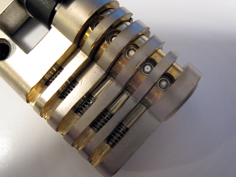 utilizes what are called "telescoping pins". This means there is another tiny pin stack inside each of the 5 pin stacks. I refer to these as